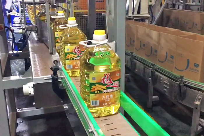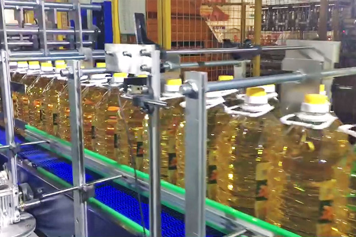 食用油灌裝生產線有回旋式和直線式兩種類型的設備供客戶選擇,灌裝量可在250ML-2000ML之間任意調整,液晶顯示,定量精確,灌裝無滴漏。